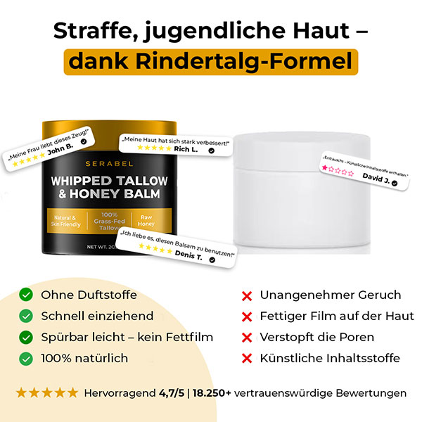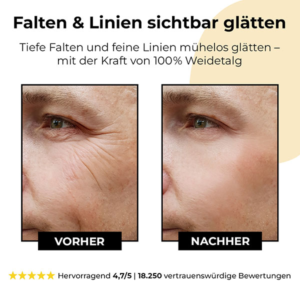 Ganz einfach: Deine Haut erkennt Rinderfett als Nahrung, nicht als Chemikalie. Das bedeutet, sie kann die Nährstoffe direkt aufnehmen, die sie für Regeneration und Stärke benötigt.